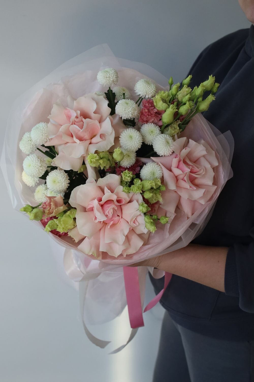 3 французские рорзы, кустовая хризантема Ньютон, эустома