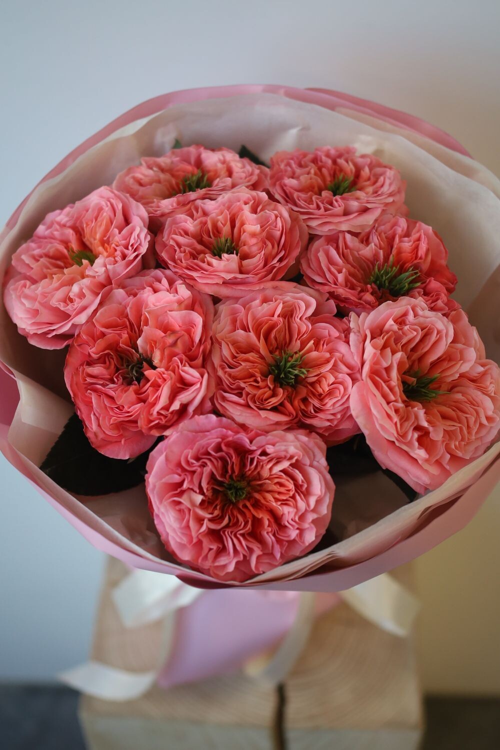 9 одноголовых роз Мандарин Экспрешн в оформлении