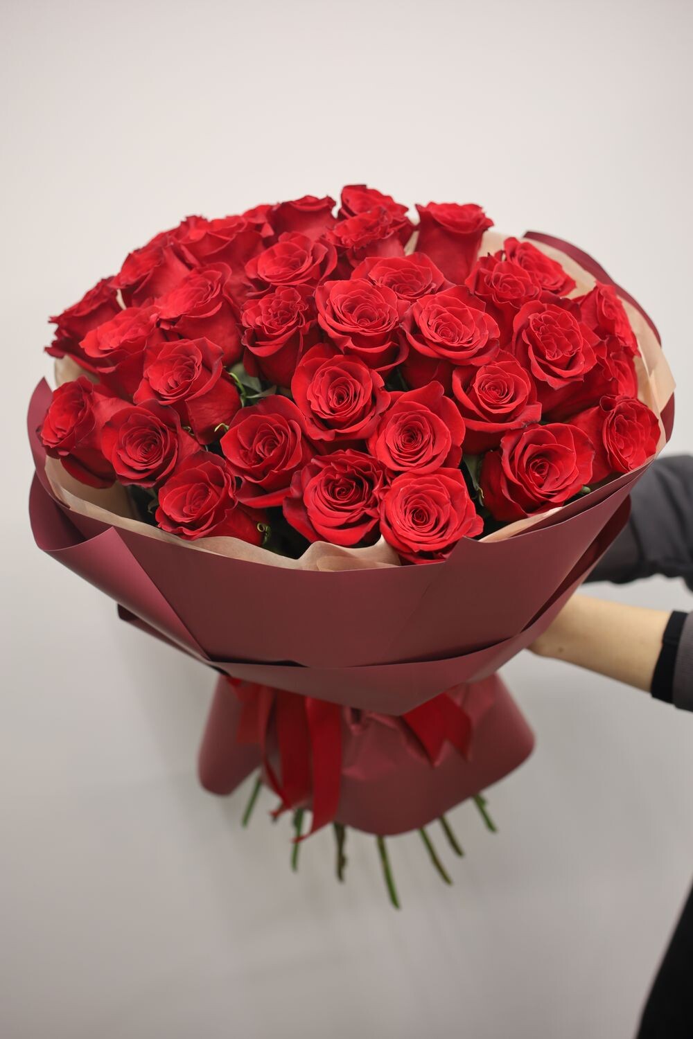 33 красные розы Эксплойер (Эквадор, 70 см)